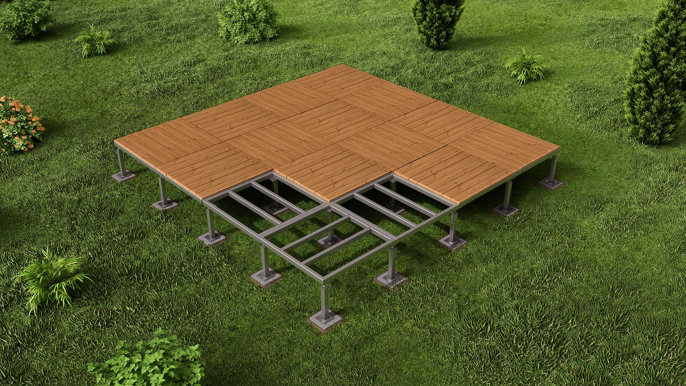 - Raised walkways and platforms, ideal for sloped or uneven ground